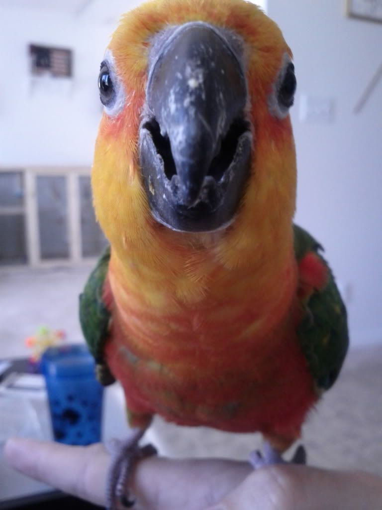 My name is Leah, I am 24 years old, I am married to Michael and we're expecting our first baby in February, that is if you don't count our bird :) Travis is our Jenday Conure baby, he's almost 1 years old. I actually don't know his birthday, or hatchday as it's called.. Our bird is awesome though! When we first got him in December last year it took him a while to trust us, we both worked with him a lot. I'll tell you more about what we did later.